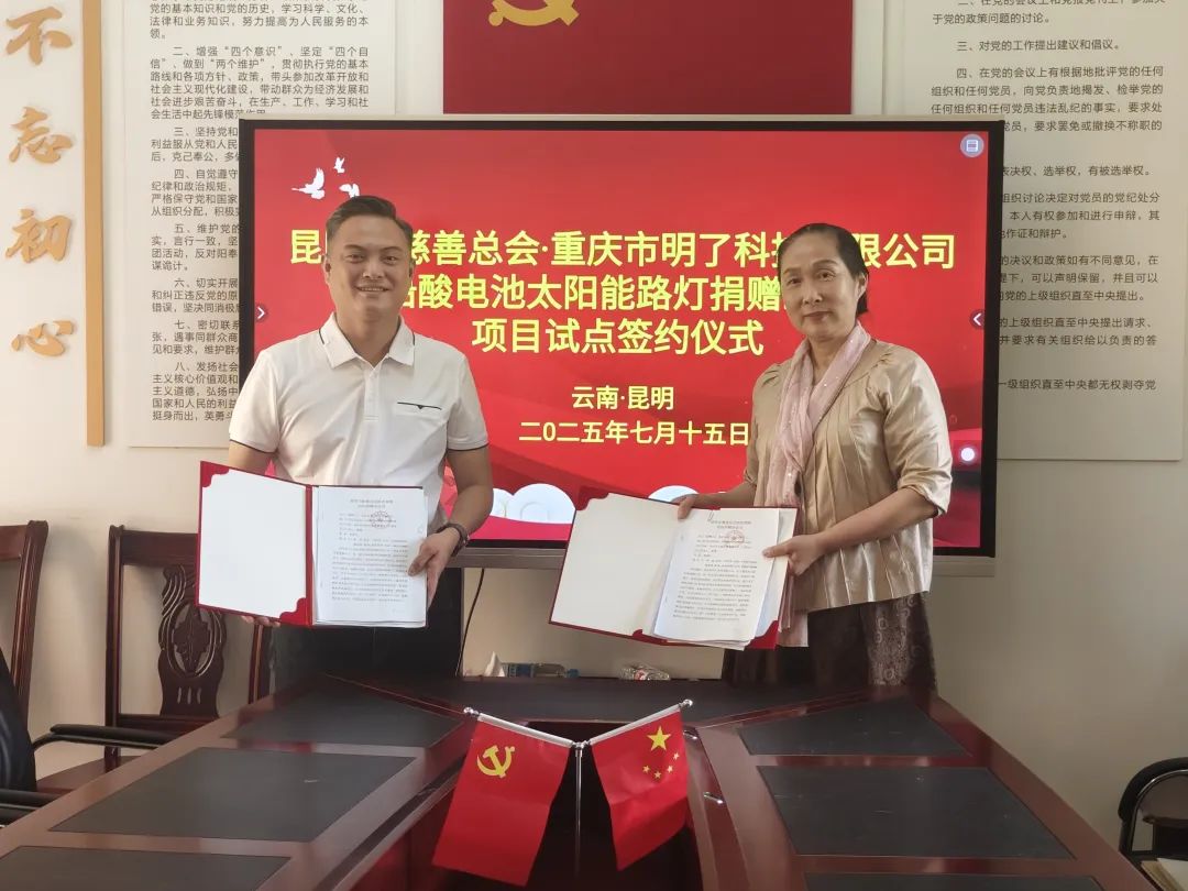 2025年7月15日,昆明市慈善总会与重庆市明了科技有限公司在昆明市慈善总会一楼会议室举行捐赠仪式。此次捐赠,重庆市明了科技有限公司自愿无偿(无任何附加条件)向昆明市慈善总会捐赠铅酸电池太阳能路灯相关...